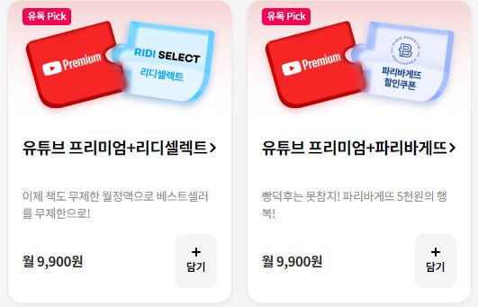 ■ YouTube Premium + 리디셀렉트 : 월 9,900원