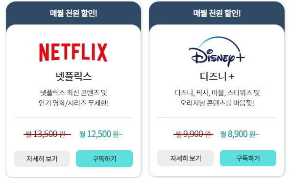 ■ 넷플릭스 : 매월 1천원 할인 (월 13,500원 → 12,500원)