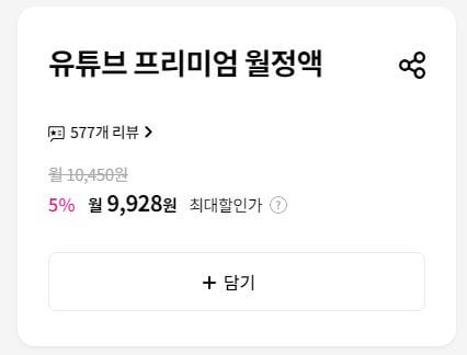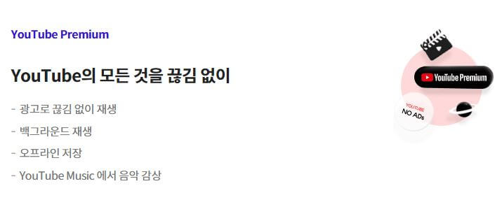 LG U+ 유튜브 프리미엄 월정액 : 9,928원