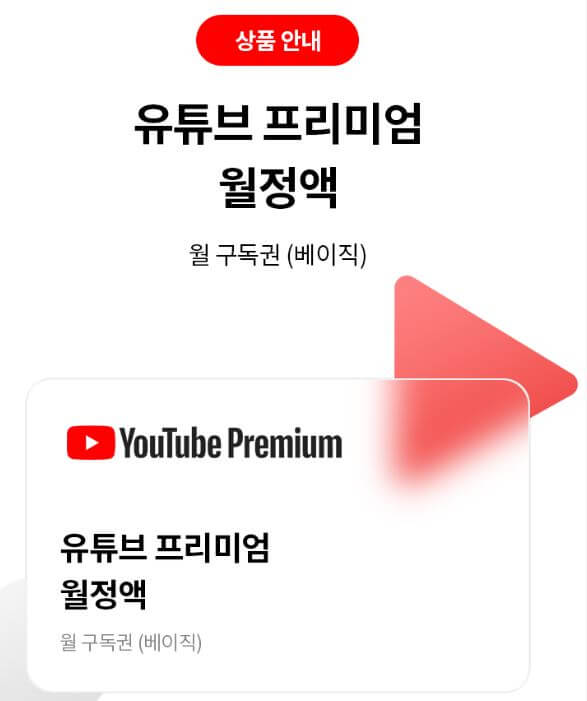 그동안 유튜브 프리미엄을 10,450원에 유튜브에서 이용하셨다면, 통신사의 할인 서비스가 훨씬 가성비 있고 효율적으로 생각됩니다. 이번 기회에 좋은 서비스로 더 혜택 많이 받으시기 바랍니다.