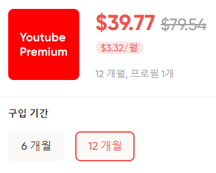 현재 수요가 폭증하면서 이전과 달리 유튜브 프리미엄 + 유튜브 뮤직을 묶어서 이용권을 판매하고 있습니다. 유튜브 가격 인상으로 수요가 워낙 많아서 서두르셔야 신청할 수 있는 상황입니다.